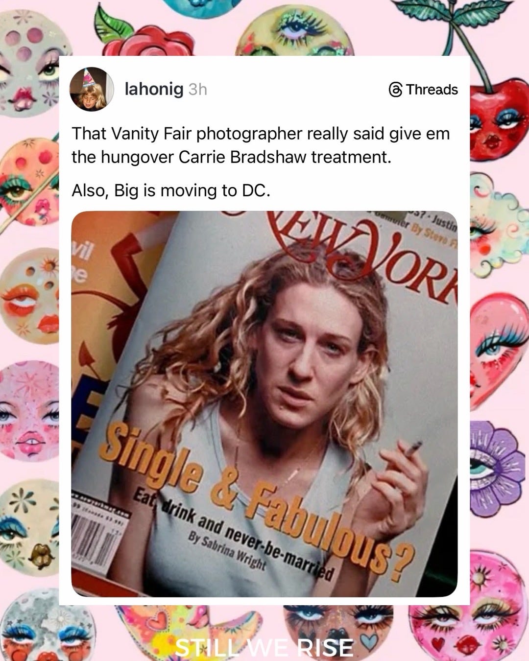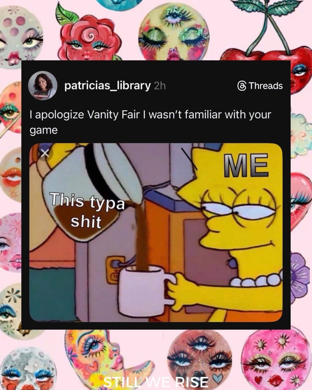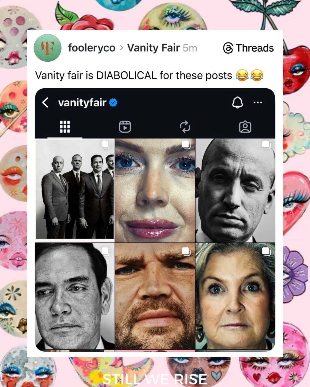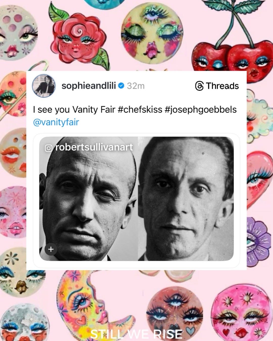 Playback speed×Share postShare post at current timeShare from 0:000:00/0:00Transcript3857The Vanity Fair Meme Roundup You’ve Been Waiting ForLindsay Meyer-HarleyDec 17, 20253857ShareTranscriptDiscussion about this videoCommentsRestacksStill We Rise by Lindsay Meyer-HarleySubscribeAuthorsLindsay Meyer-HarleyRecent PostsToday 11.12 in Pictures + PostsNov 13, 2025 • Lindsay Meyer-HarleyA Lesson on Fascism by Rick StevesMar 20, 2025 • Lindsay Meyer-Harley